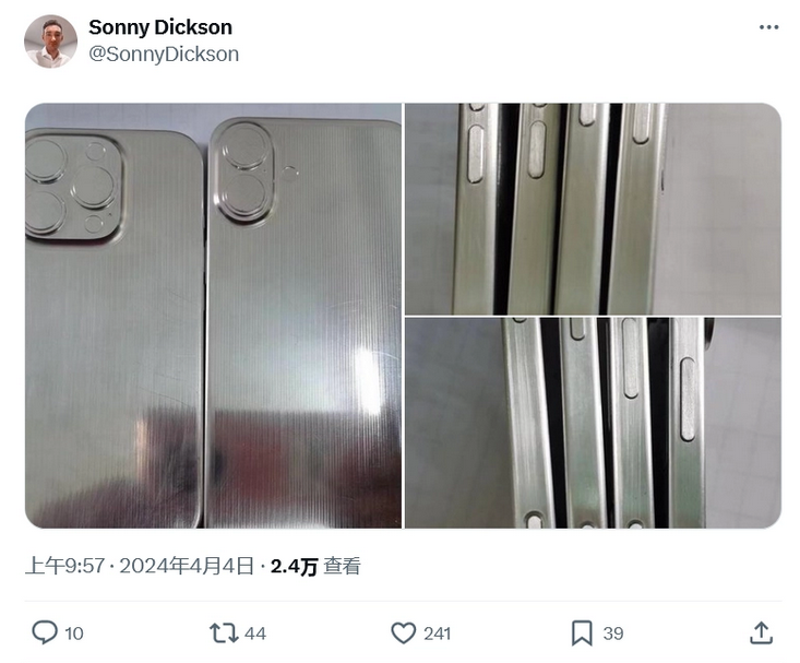近日,据称是 iPhone 16 系列的模型机在网络上曝光,从流出的图片中,可以了解新款机型的一些变化。